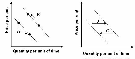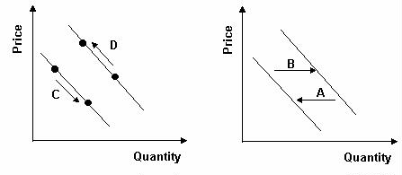 Answer: C. A change in price causes a movement along the demand curve. When price falls, the movement is downward and to the right.